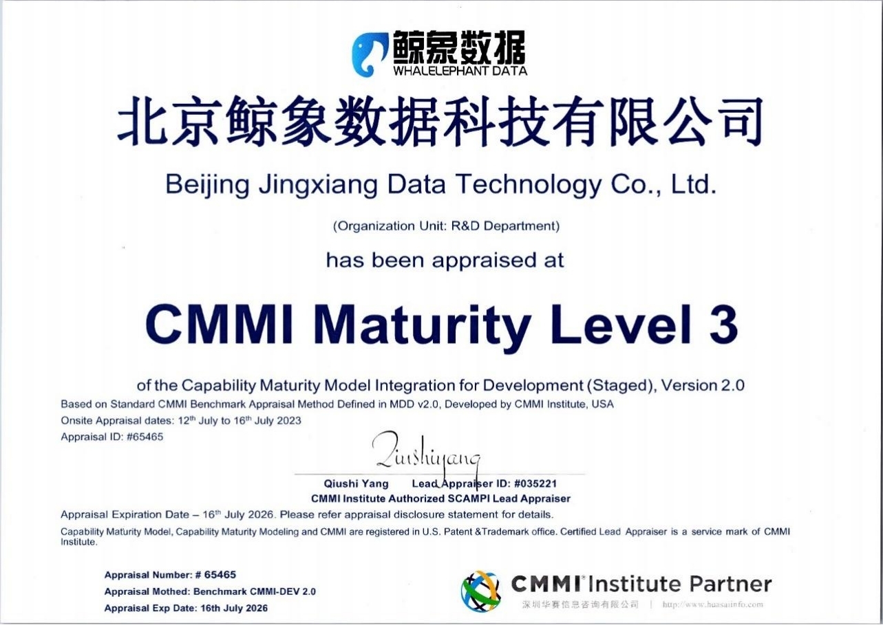 CMMI3級(jí)軟件能力成熟度模型集成認(rèn)證證書